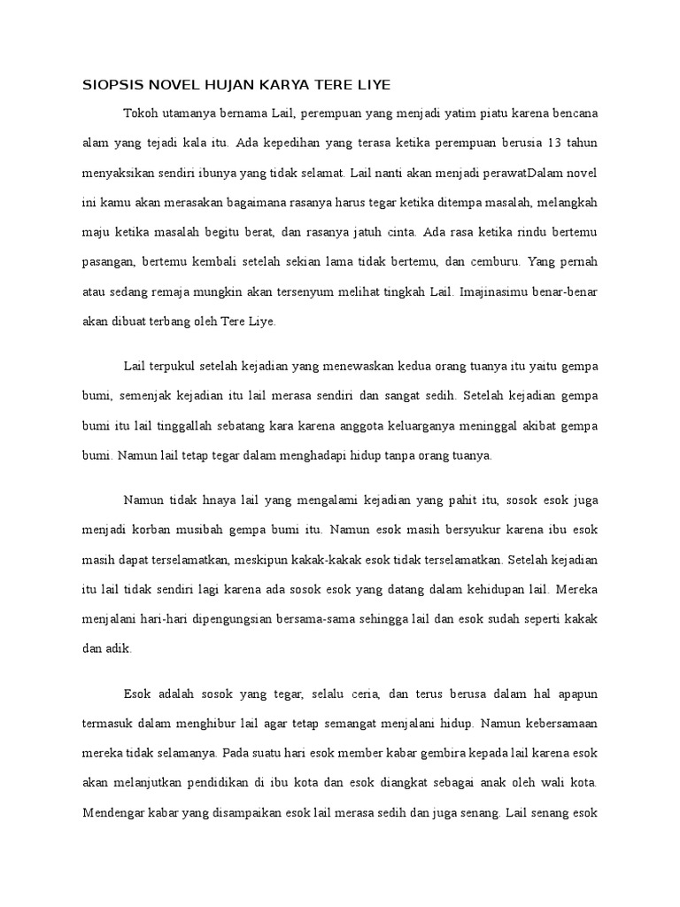 Rekomendasi buku novel terbaik tere liye indah nurbaeti booktube indonesia. 0 ratings0% found this document useful (0 votes). Tere liye adalah salah seorang penulis yang sedang naik daun di dunia literasi indonesia. Umat manusia sejatinya sama seperti virus. Kitaplar ve referans novel rain (tere liye). Ia dibantu oleh elijah untuk meletakkan sebuah bando di. At first i don't think that i would like the story, but as the story goes, i just love it, despite some scientific stuff in just like the others, hujan is the first novel i've read from tere liye. My first tere liye's book! Januari 2016 resensi novel hujan. Please fill this form, we will try to respond as soon as possible. Tere liye adalah nama pena dari seorang penulis tanah air yang karyanya selalu menjadi best seller. Sibuk menghindari hujan aneh yang. Ketika saya memutuskan untuk membeli novel ini misalnya, novel hujan ini masuk kategori top 10 book of.