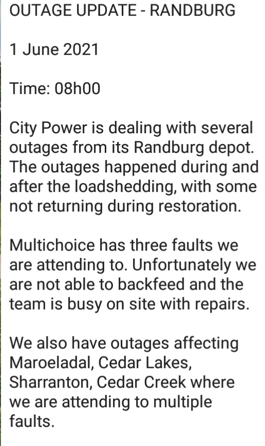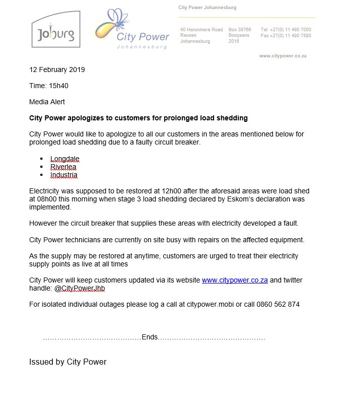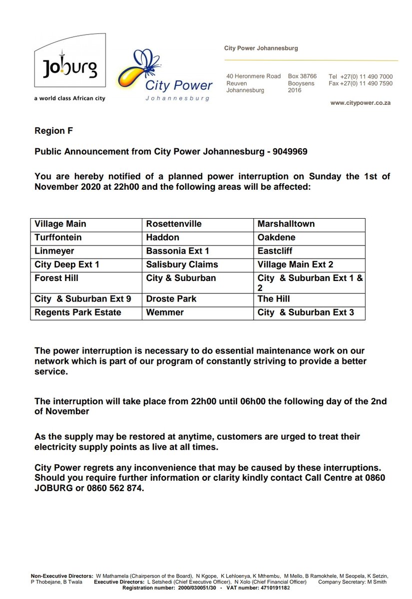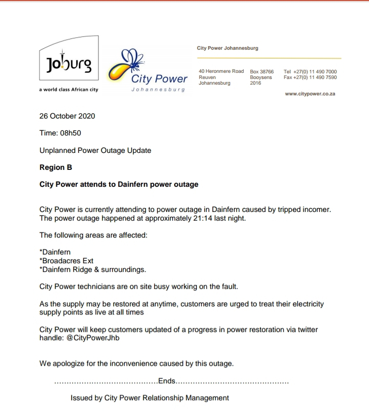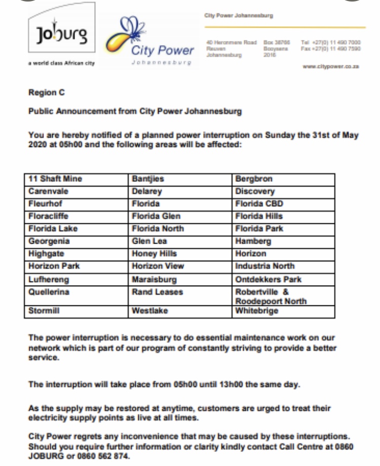 City Power Twitter - Citypowerjhb On Twitter Joburgupdates Plannedoutage Bromhof Region B Be Aware Of A Planned Outage Scheduled For Tuesday The 1st Of December 2020 From 8h00 See Attached For More Details Nn Https T Co Wjevfnnmfq : This will ease overload on our network this winter.