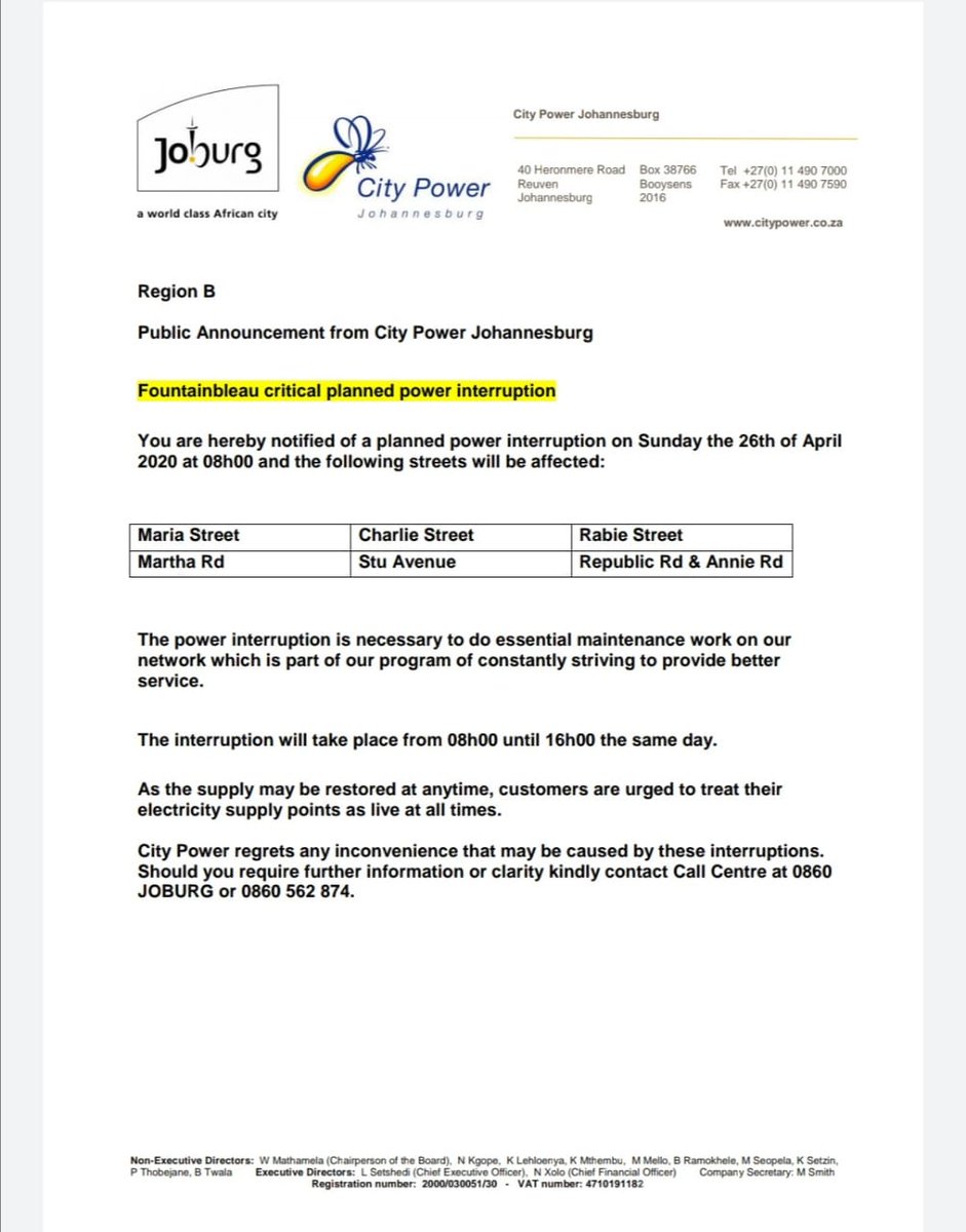 Citypowerjhb On Twitter Joburgupdates Joburgservices Mondeor Criticalplannedoutage Regionf Kindly Be Notified Of A Planned Power Interruption On Sunday The 14th Of February 2021 From 07 00 Until 15 00 The Same Day Gr Https T Co Fvn50zkp5w from pbs.twimg.com Today i am showing you all working twitter codes for power simulator.what is power simulator?our city is in chaos! This comes after the body of a suspected cable thief has been found at the westfield substation in modderfontein on saturday. 0 ответов 0 ретвитов 0 отметок «нравится». It's all part of a technological shift that's turning traditional speech pathology on its head. 18,246 likes · 525 talking about this · 421 were here. Will you become a superhero and serve out. @bostonenviro is holding office hours today from 12 @citypowerjhb on twitter @citypowerjhb on twitter: Being (somewhat) active on twitter, and fascinated by the vast amounts of wildly random but often extremely useful information endlessly tweeting across it, i'm always.
